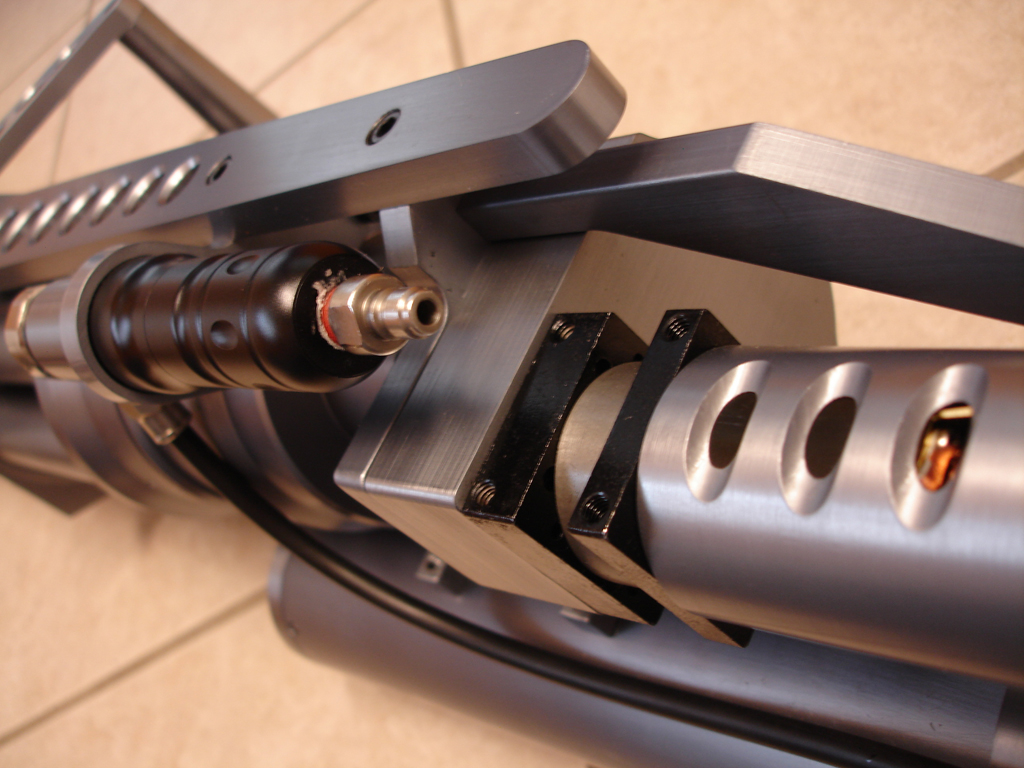 Quick disconnect fitting for the external airline. The RSG-2 is compatible with either CO2, High Pressure Air (HPA) or high powered air compressors.